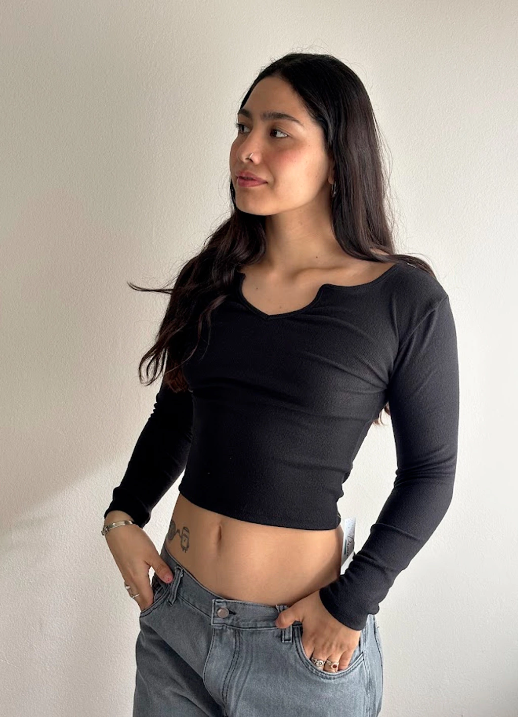 Camiseta frizada Ana con cuello en C. Suave, abrigada y con un calce súper cómodo. Ideal para el frío, básica y versátil para usar sola o como primera capa. ¡Un must de invierno!