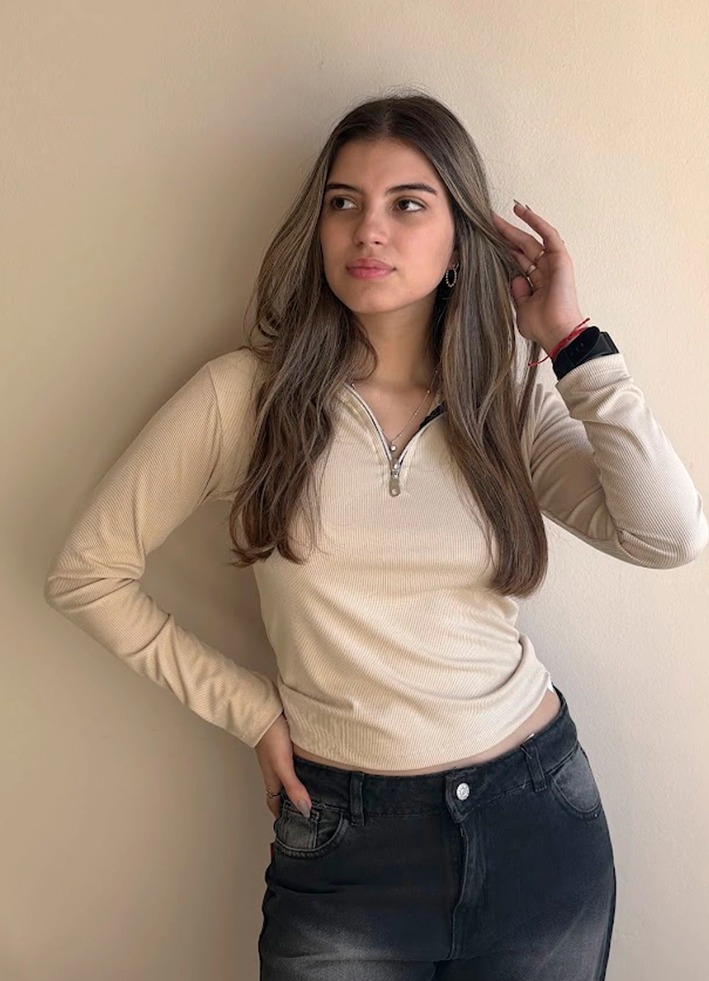Camiseta de morley con detalle de cierre, femenina y canchera. Suave, elastizada y súper combinable. Ideal para looks de día o noche. ¡Sumá estilo a tus básicos!
