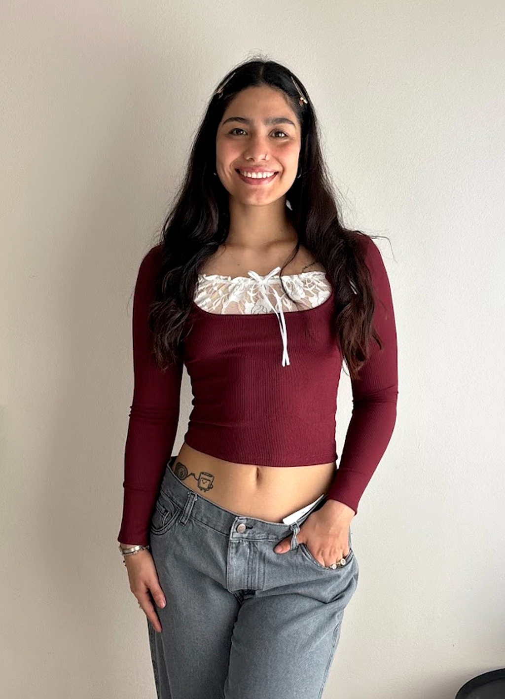 Camiseta de morley con detalle de encaje, femenina y canchera. Suave, elastizada y súper combinable. Ideal para looks de día o noche. ¡Sumá estilo a tus básicos!